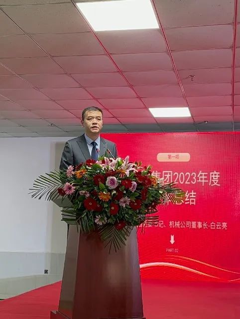 第一項(xiàng):集團(tuán)公司黨委書記、機(jī)械公司董事長白云亮做《華寶集團(tuán)2023年度工作總結(jié)》