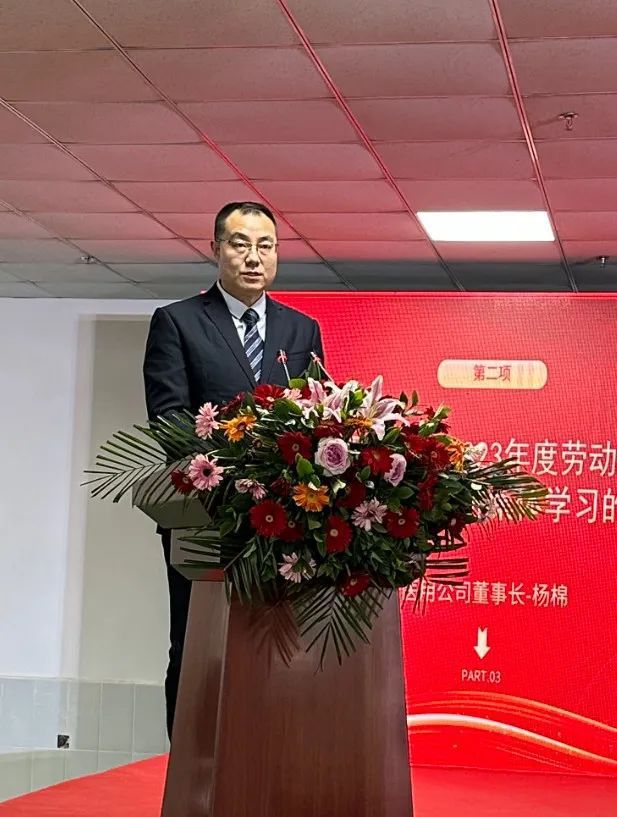 第二項(xiàng):醫(yī)用公司董事長 楊棉宣讀《華寶集團(tuán)開展向2023年度勞動(dòng)模范、先進(jìn)工作者、先進(jìn)集體學(xué)習(xí)的通知》